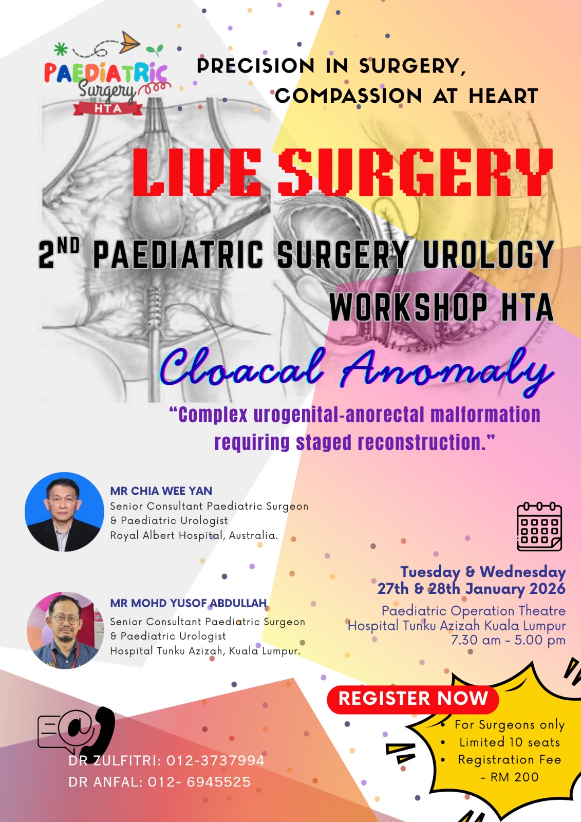 The Live Surgery, Cloacal Anomaly Workshop is back! Tackle complex urological anomalies with guidance from the Masters! Don’t miss this opportunity! Participants are limited to surgeons only (that doesn’t mean the learning stops there).