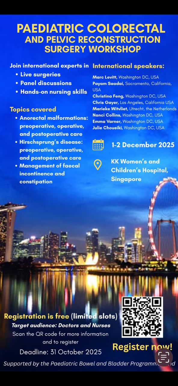 Join International experts discussing paediatric colorectal and pelvic reconstruction surgeries during this two days live surgery demonstration and workshop! Learn operative tips and tricks for managing anorectal malformations and Hirschsprung’s disease.